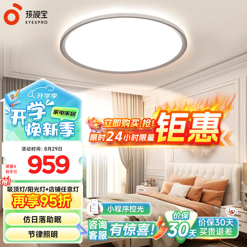 孩视宝卧室护眼吸顶灯全光谱客厅书房儿童房防蓝光频闪led灯具AH34-T价格:1699.00元!