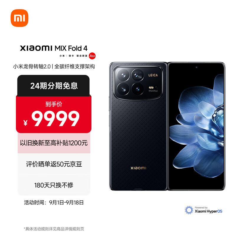 小米(MI)MIX Fold 4 小米龙骨转轴2.0 徕卡光学全明星四摄 第三代骁龙8 16GB+512GB 龙鳞纤维版 5g 折叠屏价格:9999.00元!