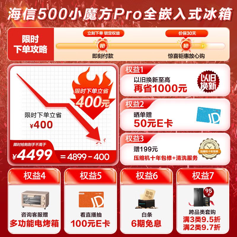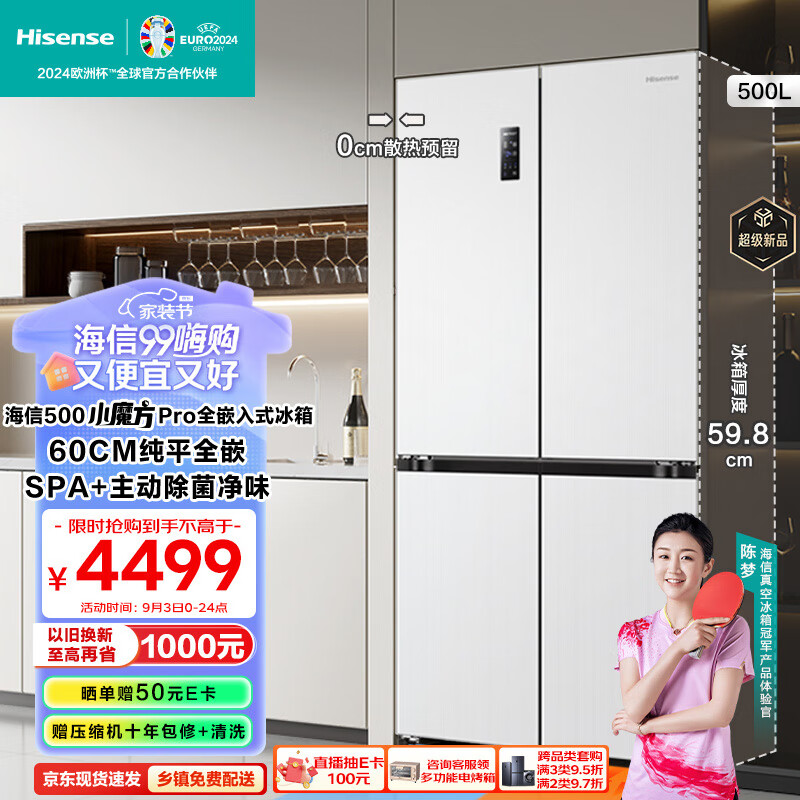 海信(Hisense)500小魔方Pro全嵌入式冰箱四开门零嵌平嵌十字无霜一级能效双变频BCD-500WMK5PU冰箱价格:4899.00元!