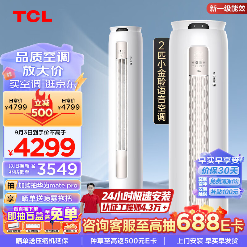 TCL空调2匹新一级能效变频冷暖 小金聆 语音智能 空调立式 空调柜机KFR-51LW/RT7Ga+B1价格:4299.00元!