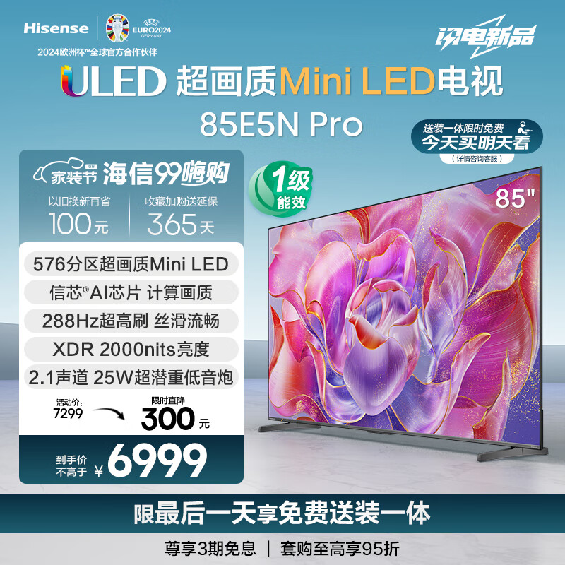 海信电视85E5N Pro 85英寸 576分区Mini LED 288Hz高刷 大屏巨幕黑神话悟空游戏 北京以旧换新一级能效价格:6999.00元!