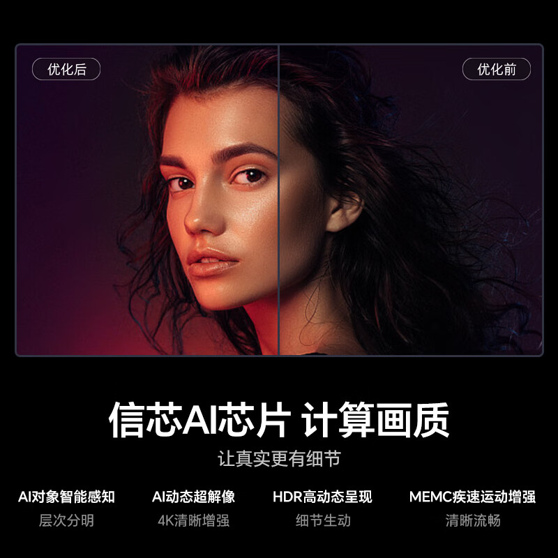 5、色彩非常丰富,含有低音炮,播放影视声音效果很好,加之有运动补偿,看高速运动物体没有拖影。物有所值!外形外观:颜值高运行速度:超快屏幕音效:棒尺寸大小:合适