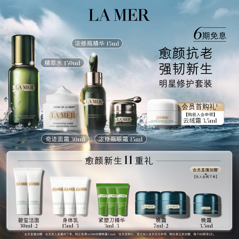 海蓝之谜(LA MER)明星修护套装(精萃水+精华+面霜+眼霜)护肤品中秋礼品教师节礼物价格:7210.00元!