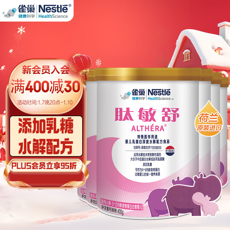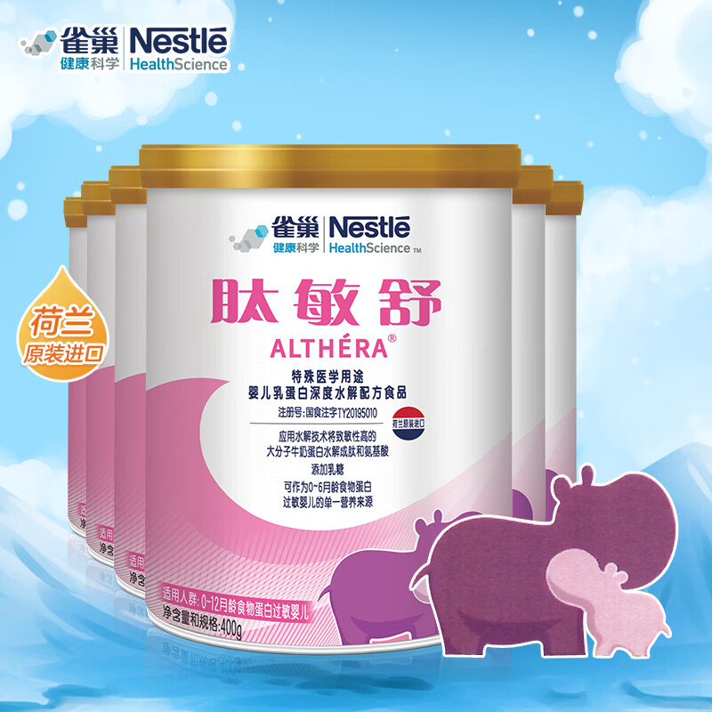 雀巢健康科学肽敏舒DHA特殊医学用途婴儿乳蛋白深度水解配方食品400g*6囤货装0-12月龄食物蛋白过敏婴儿适用价格:2454.00元!