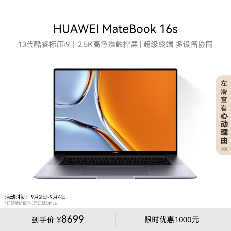 华为MateBook 16s 笔记本电脑 13代酷睿标压处理器/2.5K高色准触控屏/轻薄办公本 i9 32G 1T 深空灰价格:8699.00元!