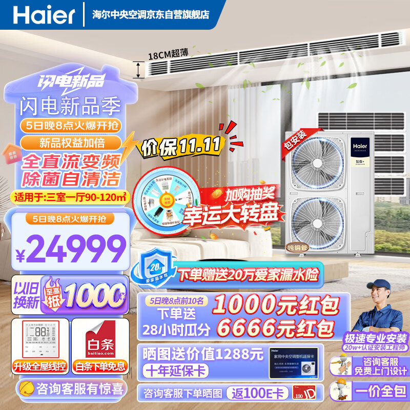 3、家里重新装修,换个中央空调。刚好看到海尔的这款空调,相信海尔的品质,家里大部分家电都用的这个牌子。客服非常棒,咨询了好多问题,都耐心解答,给客服点赞!