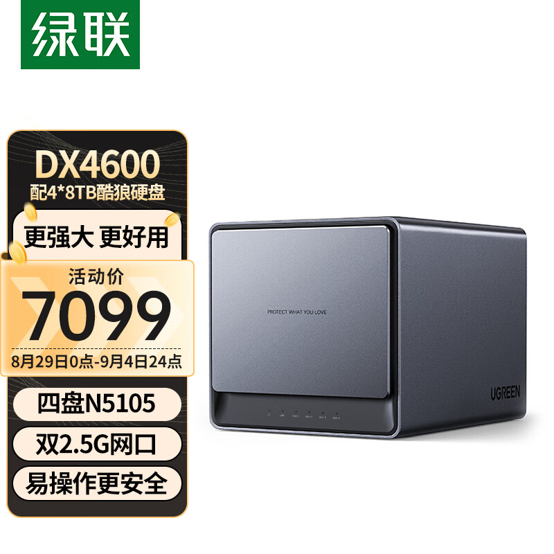 绿联(UGREEN) 私有云DX4600 32T四盘位Nas网络存储个人云硬盘服务器相册备份文件同步手机平板扩容适用iPhone15价格:7649.00元!