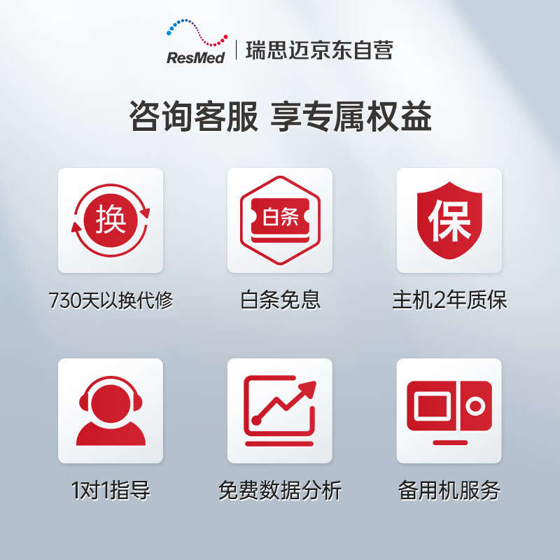 2、多年前就在用瑞思迈的,那时候还是托人从国外带回来,现在给老人买的,可以直接买国行了,价格便宜了不少,还有质保,太实惠了。噪音低,菜单可调成中文,送的鼻罩也升级了,强烈推荐。