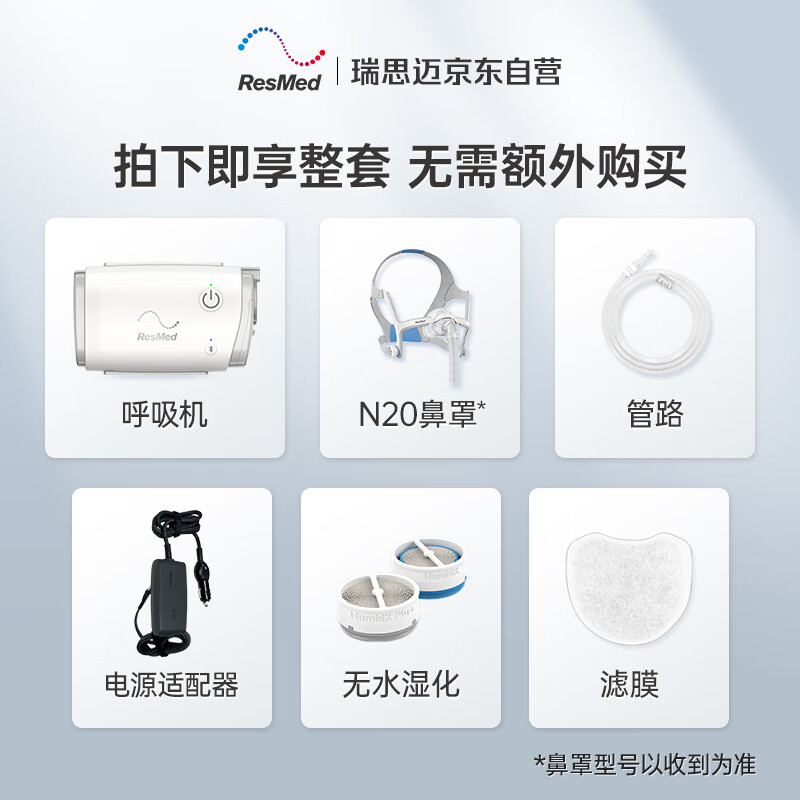 原装进口瑞思迈AirMini便捷式口袋呼吸机家用蓝牙APP医疗无创睡眠呼吸器止鼾器+N20鼻罩价格:7980.00元!