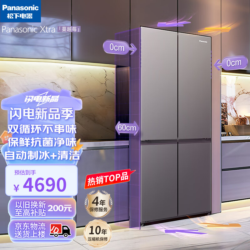 松下(Panasonic)Xtra蔓越莓冰箱 500升60厘米超薄零距离嵌入式十字对开门大容量家用电冰箱四开门风冷无霜XD50C5A价格:4990.00元!
