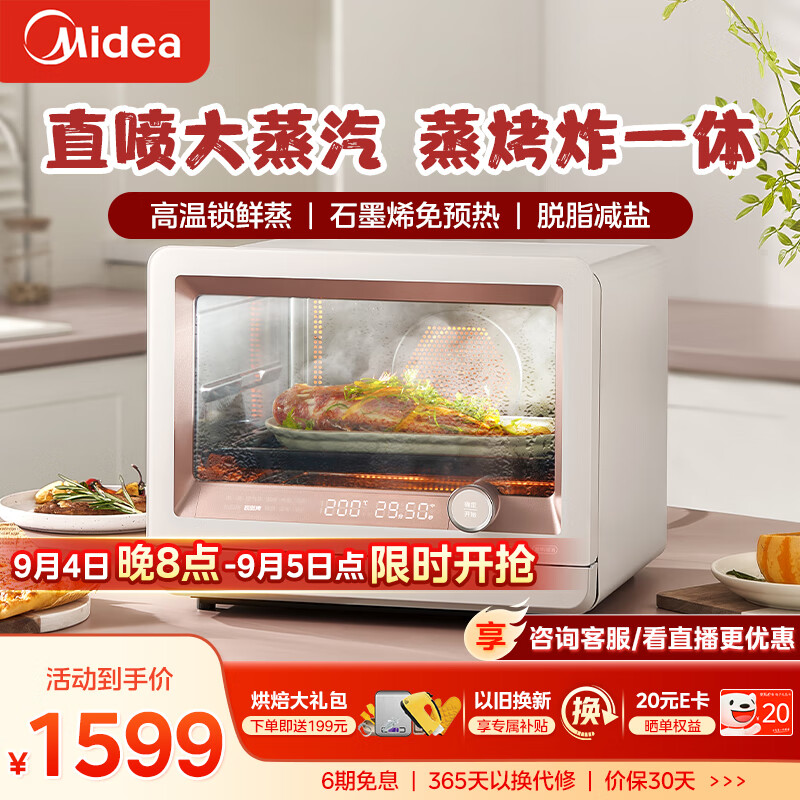 美的(Midea)家用多功能蒸烤箱蒸烤炸一体机S1pro 石墨烯烤管/健康空气炸/高温锁鲜蒸/易清洁价格:1699.00元!
