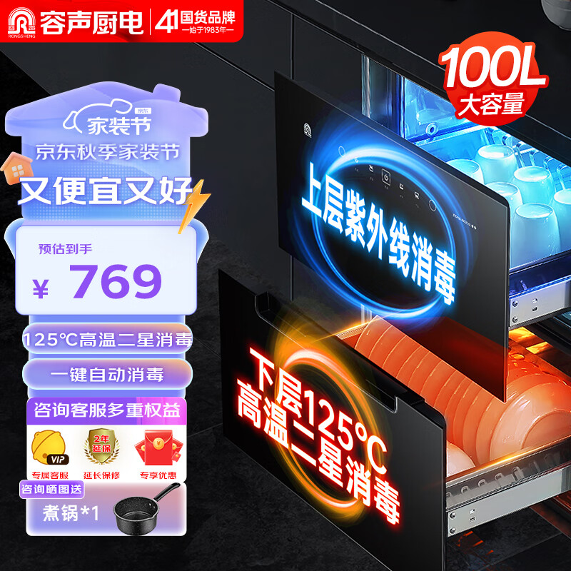 容声(RONGSHENG)消毒柜家用 嵌入式 消毒碗柜 家用碗筷餐具100L消毒柜RX02E(S)价格:769.00元!
