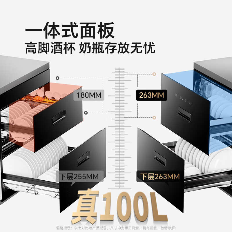 4、外形外观:外观时尚大气,包装完好产品质量:选择老品牌,信任康宝空间容量:100L容量可以放很多餐具,足够全家人用了