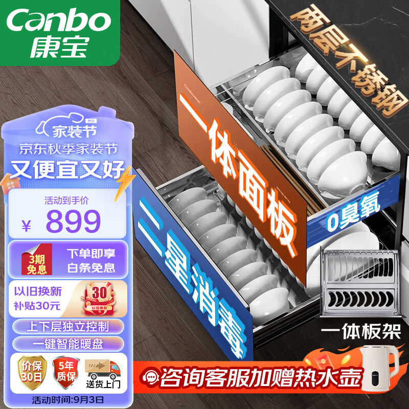 康宝(Canbo)消毒柜 内镶 嵌入式 家用 消毒碗柜 大容量 二高温家庭餐具碗筷婴儿奶瓶 不锈钢 XDZ100-EF122价格:799.00元!