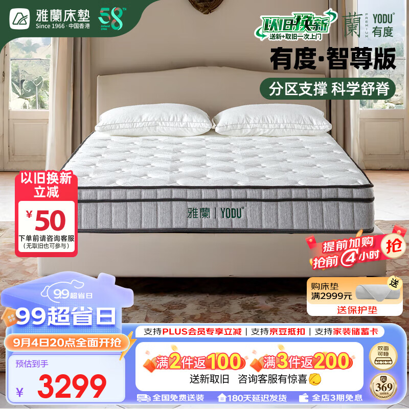 真的要说雅兰有度智尊版挺好的, 做工精细 ,床垫是在京东mall线下体验的。这种偏硬的睡感还是比较喜欢的,京东快递师傅配送的还比较快。整体感觉装起来之后还是不错的,对得起这个价位。