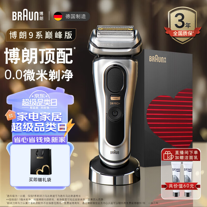 博朗(BRAUN)9系pro+版礼盒电动剃须刀整机德国进口往复式剃须刀刮胡刀男士送男朋友生日价格:1999.00元!