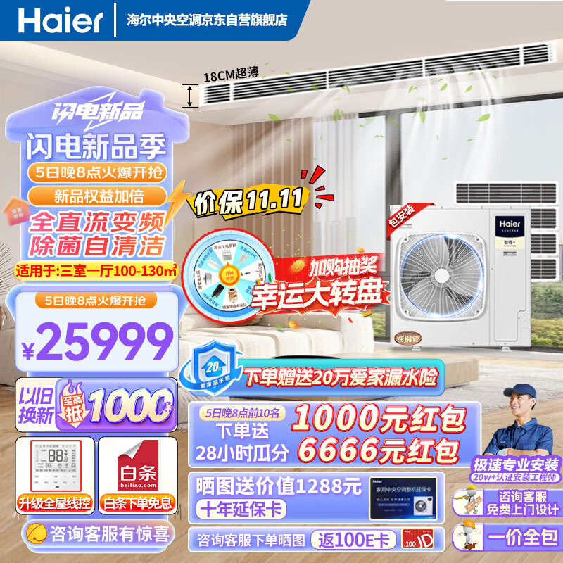 海尔(Haier)中央空调一拖四风管机大6匹小多联一级能效全直流变频嵌入式智尊+ RFC160MXSAVA(G)价格:25999.00元!