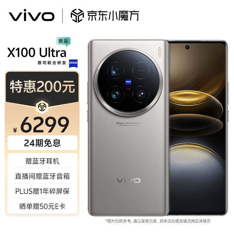 vivo X100 Ultra 12GB+256GB 钛色 蔡司2亿APO超级长焦 一英寸云台级主摄 蓝图影像 拍照 手机价格:6499.00元!