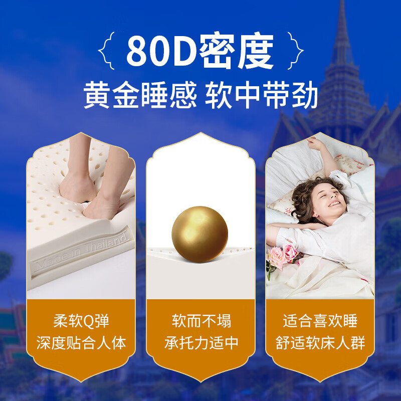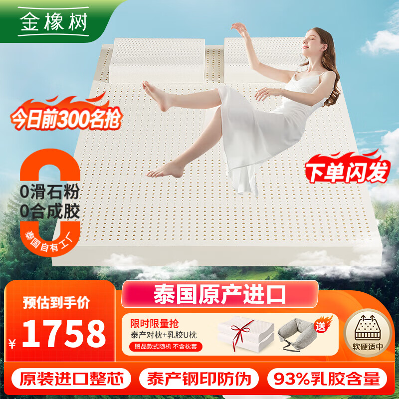 金橡树泰国原产整芯进口天然乳胶床垫双人床垫乳胶垫180*200*10cm 泰优价格:2729.00元!