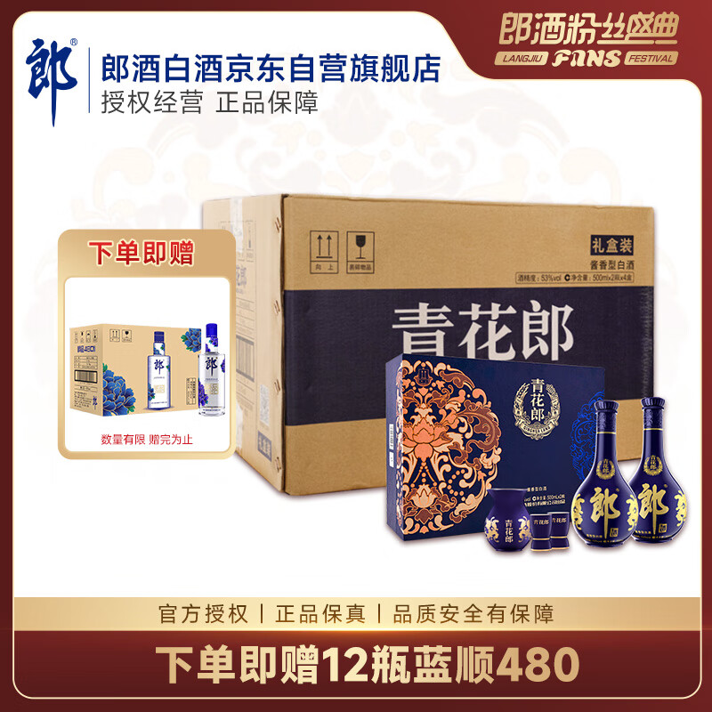 郎酒 青花郎 酱香型 白酒 53度 500ml*2*4瓶 礼盒整箱装【中秋礼品】价格:9086.00元!