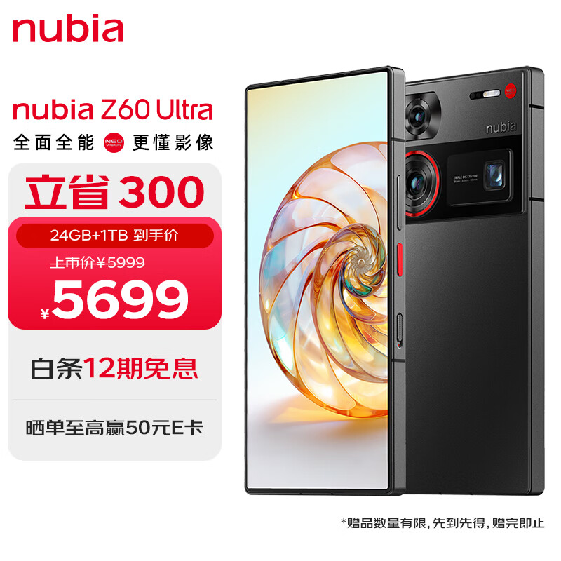 努比亚(nubia)Z60Ultra屏下摄像24GB+1T 星曜 第三代骁龙8 三主摄OIS+6000mAh长续航 5G中兴手机游戏拍照价格:5569.00元!