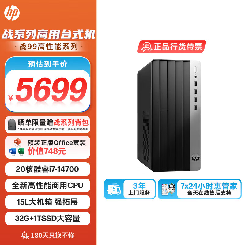 惠普(HP)战99 台式电脑主机(酷睿14代i7-14700 32G 1TSSD)商用高性能办公学习价格:5699.00元!