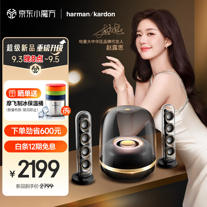哈曼卡顿 【 赵露思同款】 音乐水晶四代 蓝牙音箱 音响 家用音响 SoundSticks4 无线水晶4 墨金典藏版价格:2399.00元!