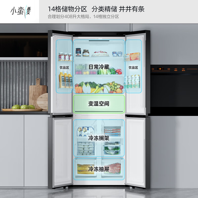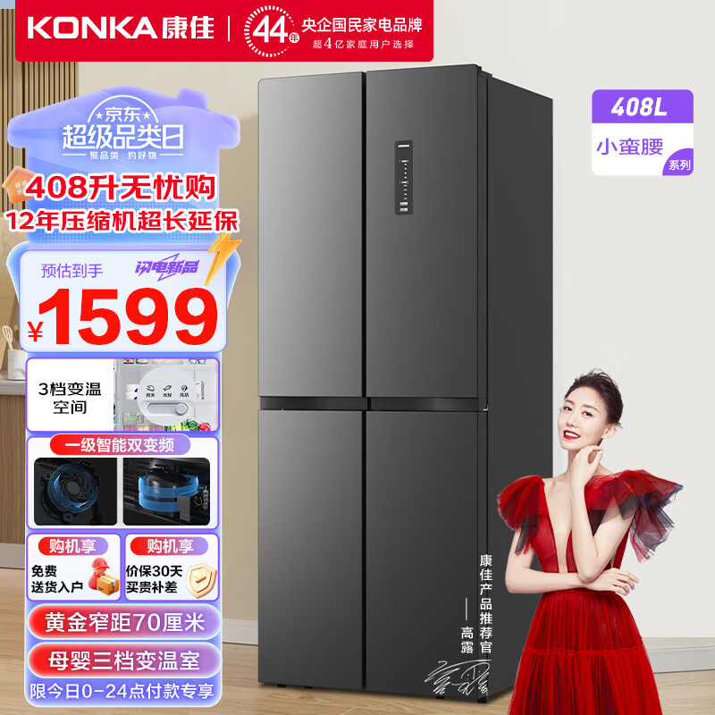 康佳408升智能变频超薄十字对开双开四开多门一级能效双循环风冷无霜大容量家用电冰箱BCD-408WPEG4S价格:1499.00元!