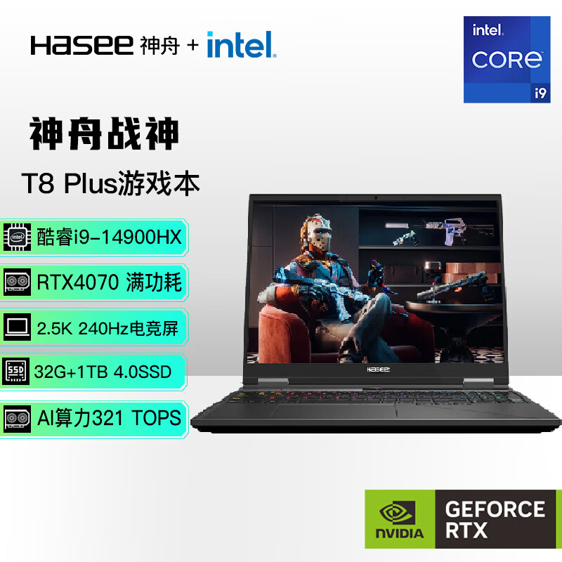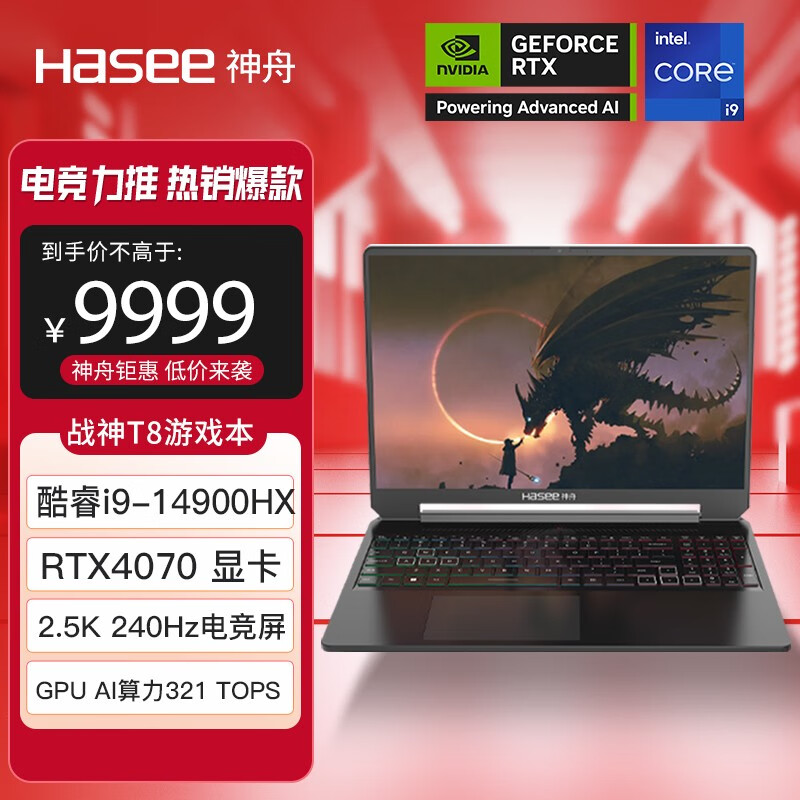 神舟(HASEE)战神T8 Plus 14代酷睿i9 16英寸游戏本笔记本电脑(i9-14900HX 32G RTX4070 240Hz 2.5K)畅玩黑神话价格:9999.00元!