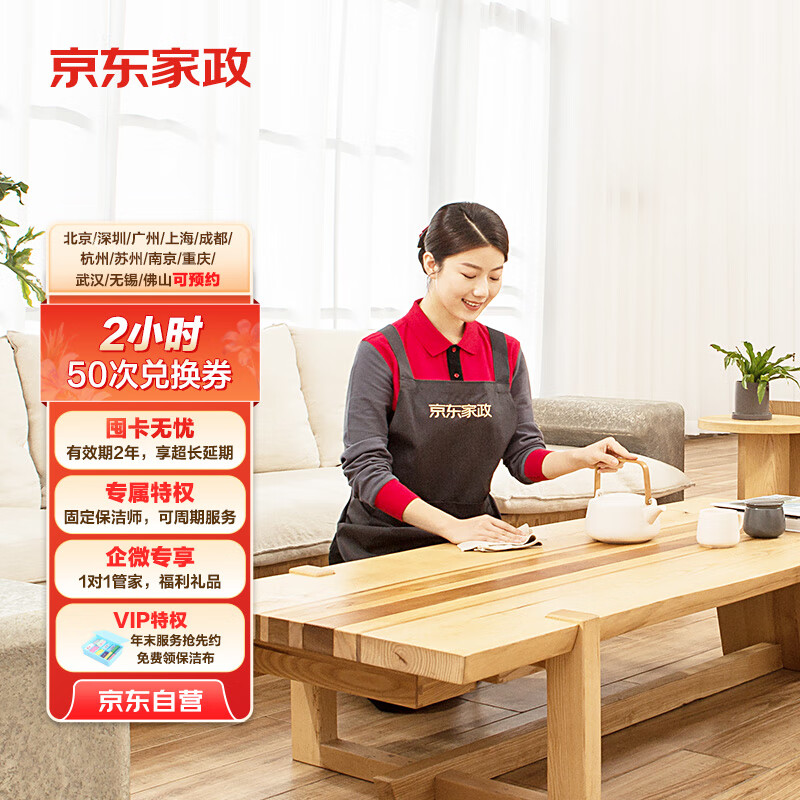京东家政2小时日常保洁50次兑换券 家政保洁服务 北上广深/成都/杭州/苏州/南京/重庆/武汉/无锡/佛山价格:5999.00元!