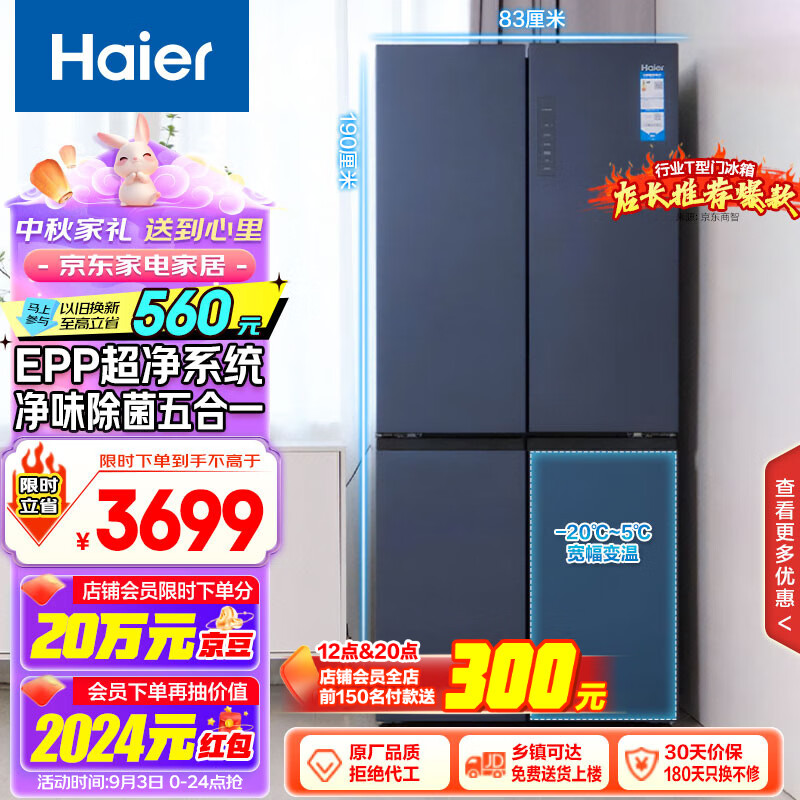 海尔(Haier)511升十字双开对开四开门电冰箱家用一级能效变频节能风冷无霜超大容量超薄BCD-511WGHTD79B9U1价格:4199.00元!