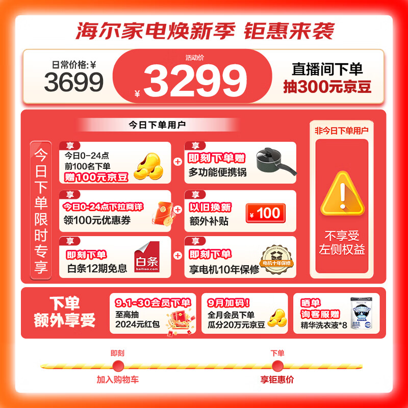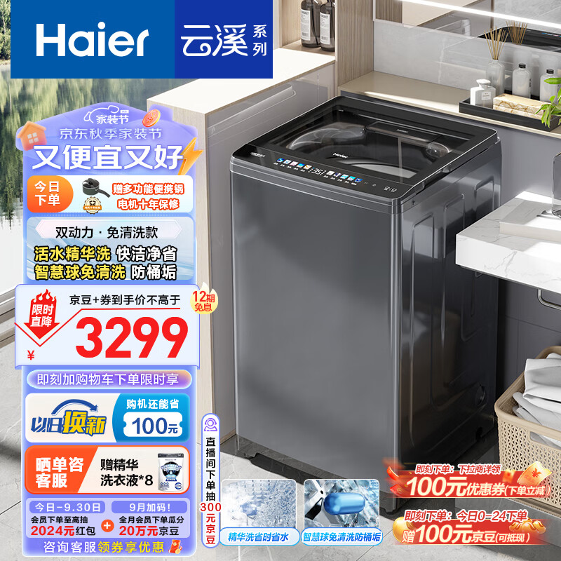 海尔(Haier)云溪波轮洗衣机全自动家用 10公斤 变频 精华洗 免清洗 双动力防缠绕 以旧换新EMS100B37mate6价格:3499.00元!