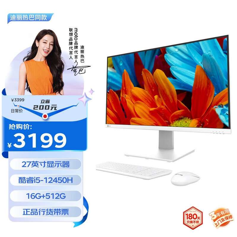联想来酷 Lecoo一体台式机电脑27英寸(酷睿12代i5-12450H 16G 512G 无线键鼠) 白价格:3166.00元!