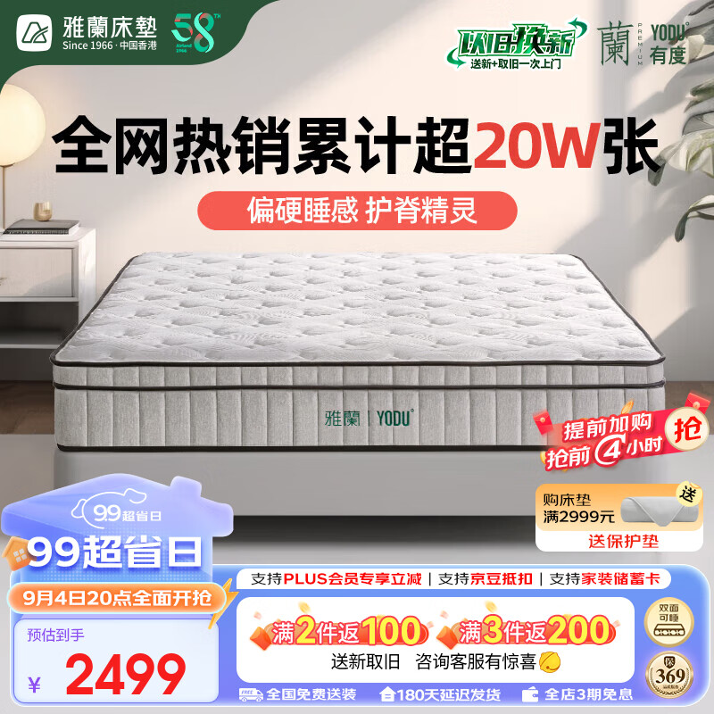 雅兰乳胶床垫偏硬家用天然黄麻独立弹簧床垫 有度旗舰版 1.8*2米价格:4499.00元!