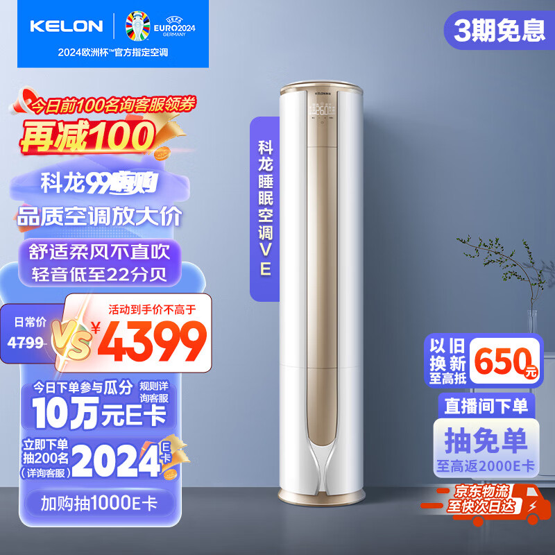 科龙(KELON)睡眠空调 3匹 新一级能效 以旧换新 舒适柔风 变频省电 冷暖 空调立式 客厅柜机 KFR-72LW/VEA1价格:4399.00元!
