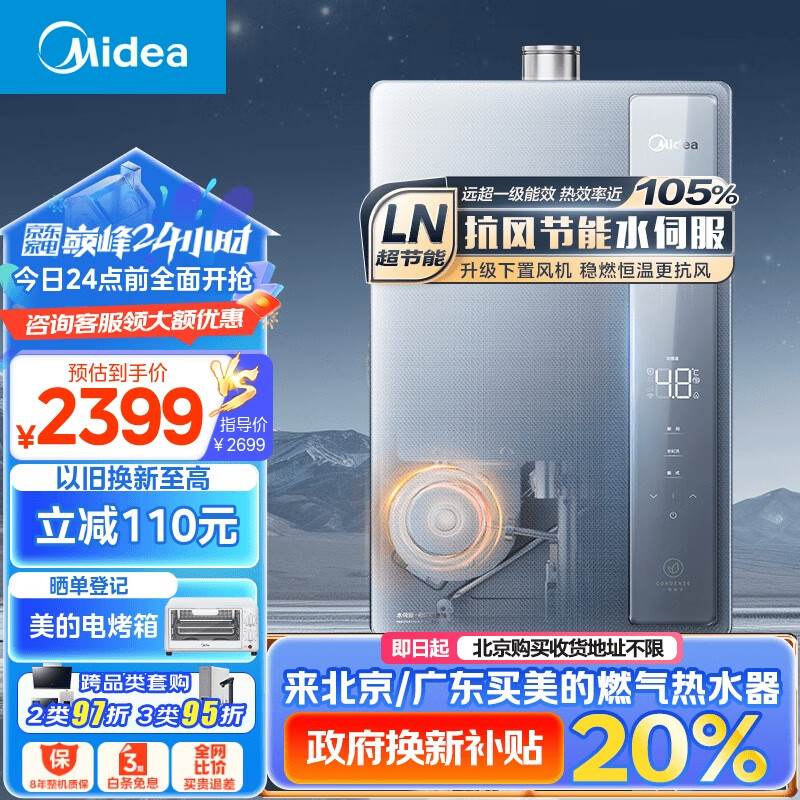 美的(Midea)绿洲LN7 16升燃气热水器 天然气 一级能效节能 下置风机 水伺服恒温JSLQ27-16LN7 Pro 以旧换新价格:2399.00元!