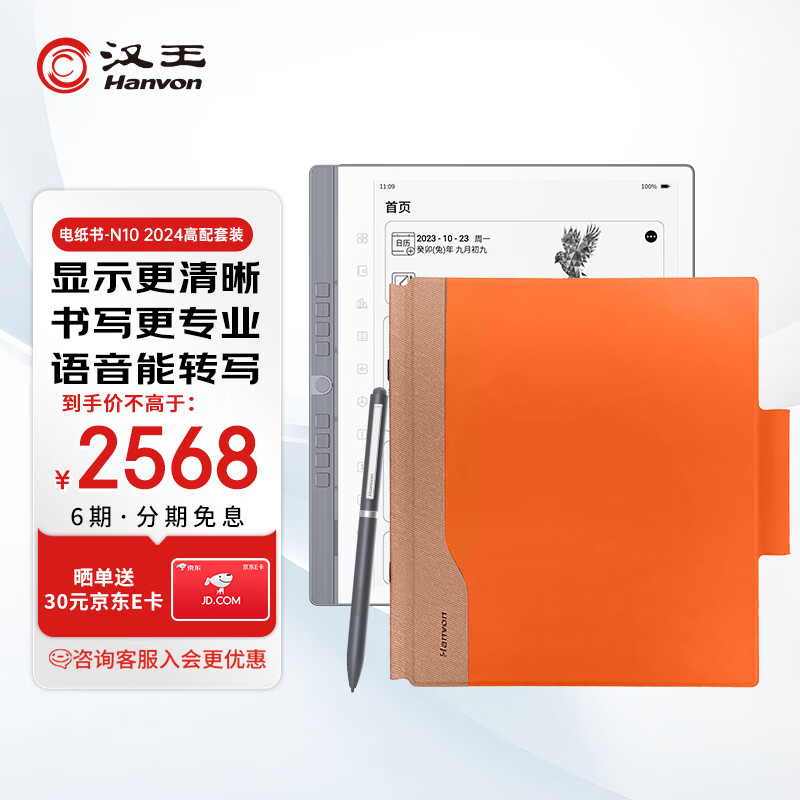 汉王(Hanvon)N10 2024手写电纸本10.3英寸电子书阅读器墨水屏电纸书电子笔记本智能办公本 橙色保护套套装价格:2568.00元!