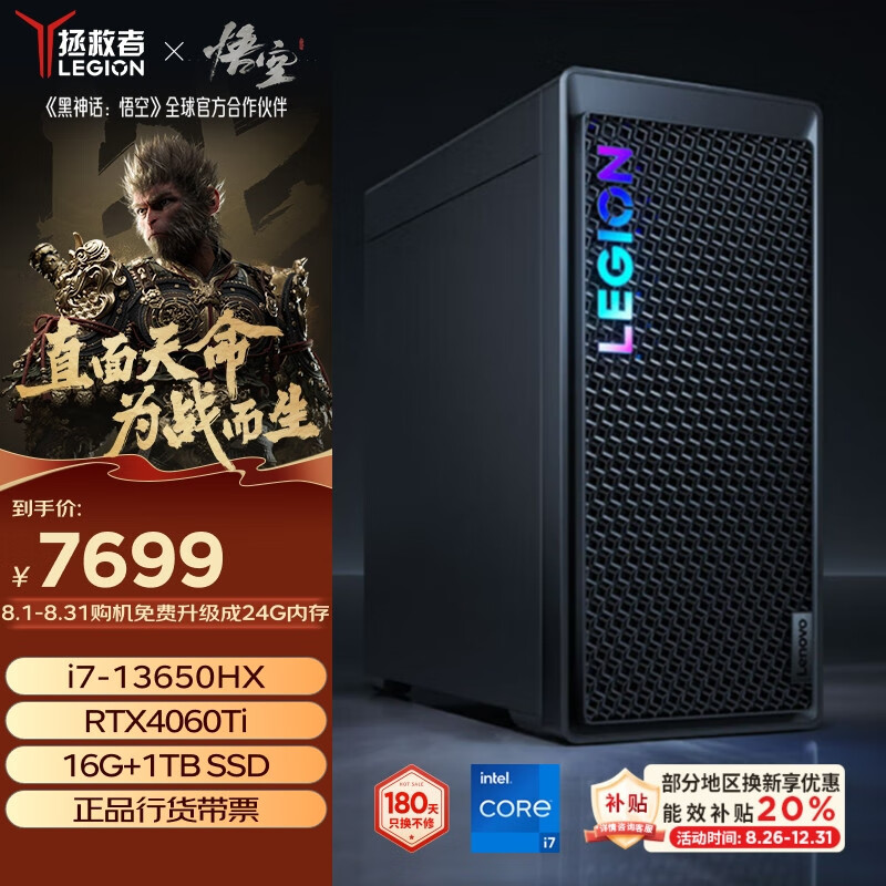 联想拯救者刃7000K游戏主机官方合作台式电脑13代i7-13650HX RTX4060Ti 16G DDR5价格:7666.00元!
