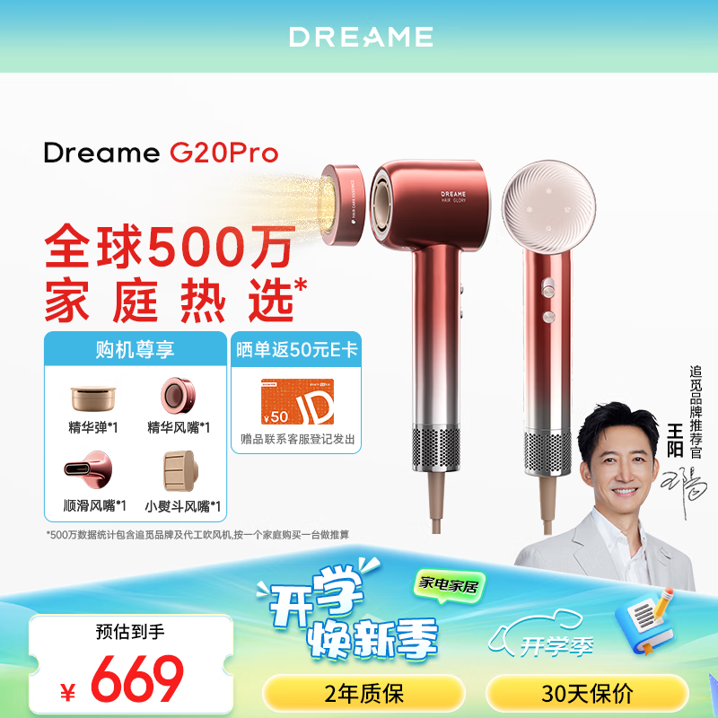 追觅韶光G20Pro高速吹风机家用 大功率负离子吹风筒 精华弹护发润发电吹风礼盒 节日送礼礼物 缎光红价格:969.00元!