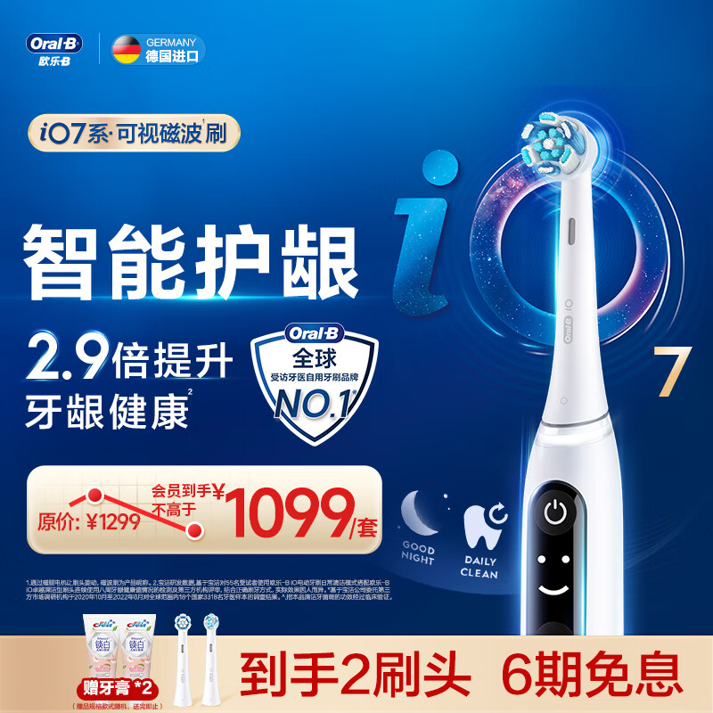 欧乐B成人电动牙刷iO7智能可视磁波刷iO系列圆头微震科技深度清洁牙龈按摩送男友送女友中秋节礼物价格:1099.00元!
