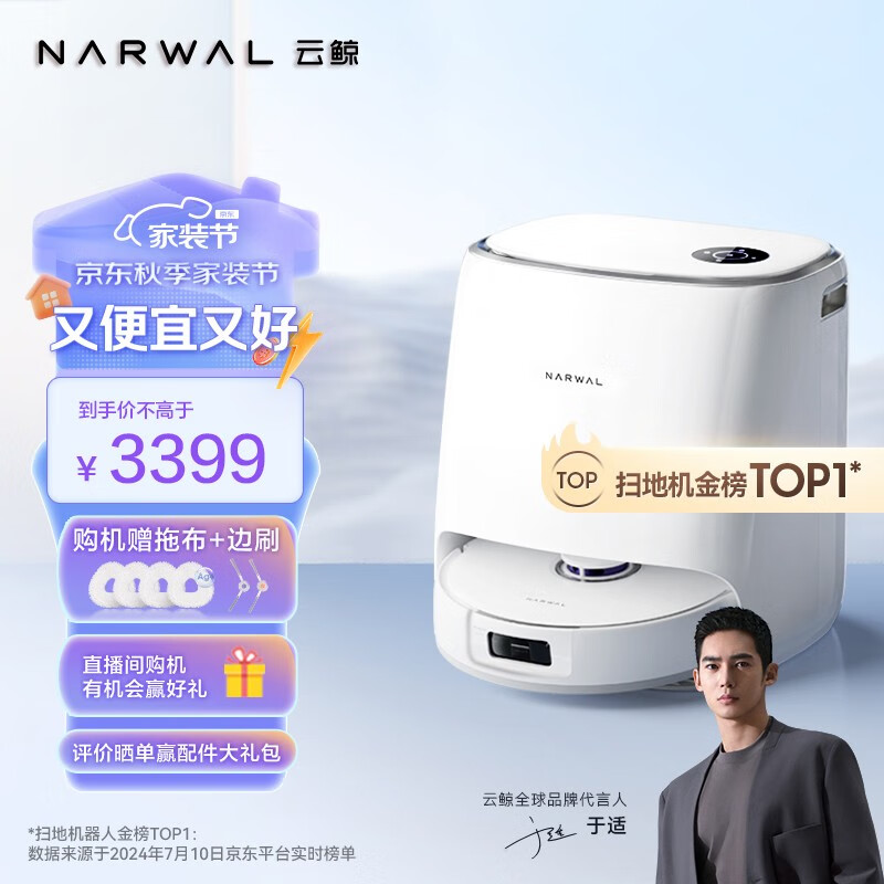 云鲸扫地机器人J4 扫拖洗烘一体自动清洗集尘全自动 洗地机洗拖一体 吸尘器拖地机擦地机器人 水箱版价格:3299.00元!