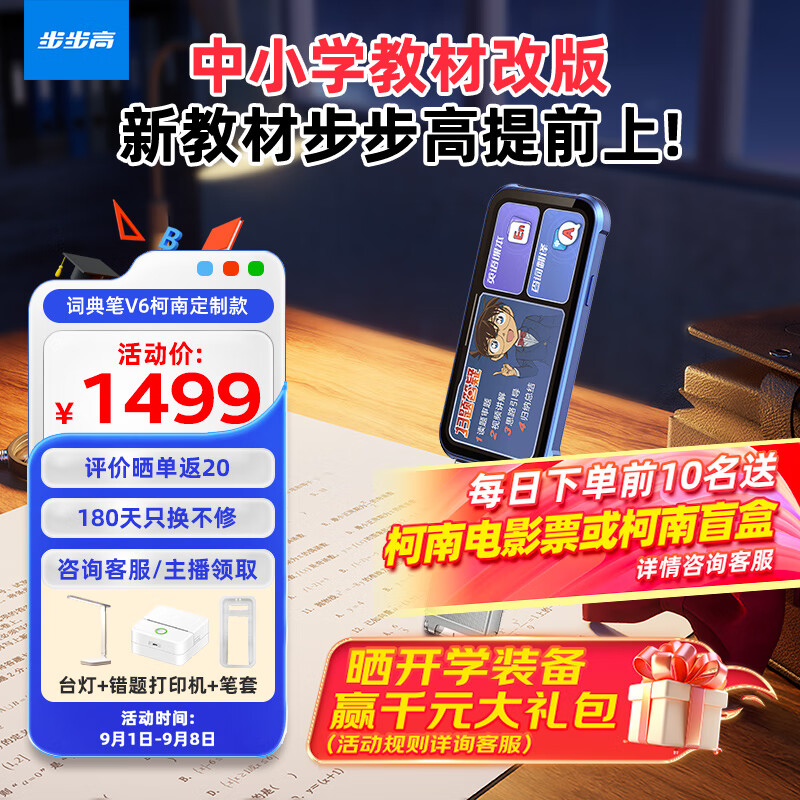 步步高(BBK)能讲题的折叠词典笔V6柯南定制款 4.08英寸超宽大屏 英语点读笔扫描笔翻译笔学习机电子词典价格:1499.00元!