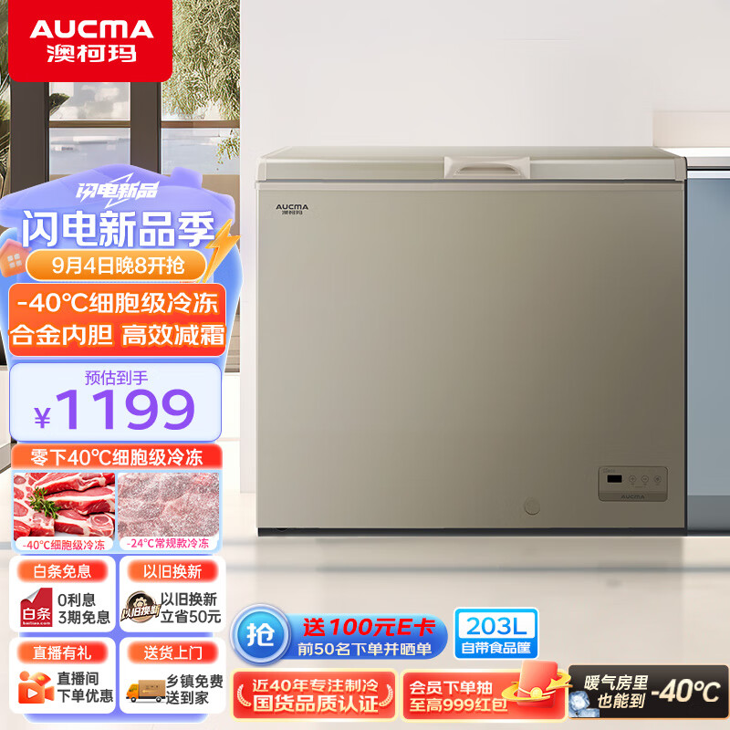 澳柯玛(AUCMA)203升零下40度超低温冰柜 囤货海鲜柜 电脑控温 家用商用大容量 一级能效BC/BD-203FNE 以旧换新价格:1273.00元!