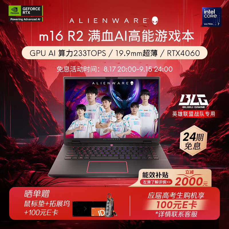 外星人(Alienware)【2024】m16 R2 畅玩黑神话 16英寸游戏本酷睿Ultra9 16G 512G RTX4060 240Hz AI笔记本电脑4960QB价格:13999.00元!