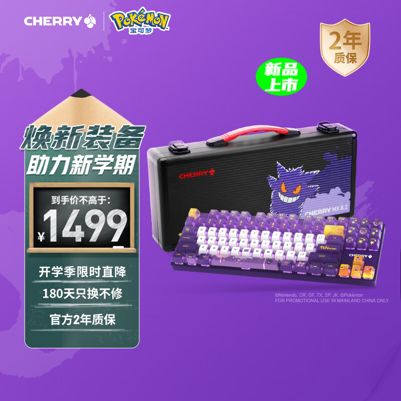 CHERRY樱桃 MX8.2 XAGA 宝可梦键盘 无线键盘 蓝牙三模机械键盘 三透PBT键帽 耿鬼联名款价格:1499.00元!