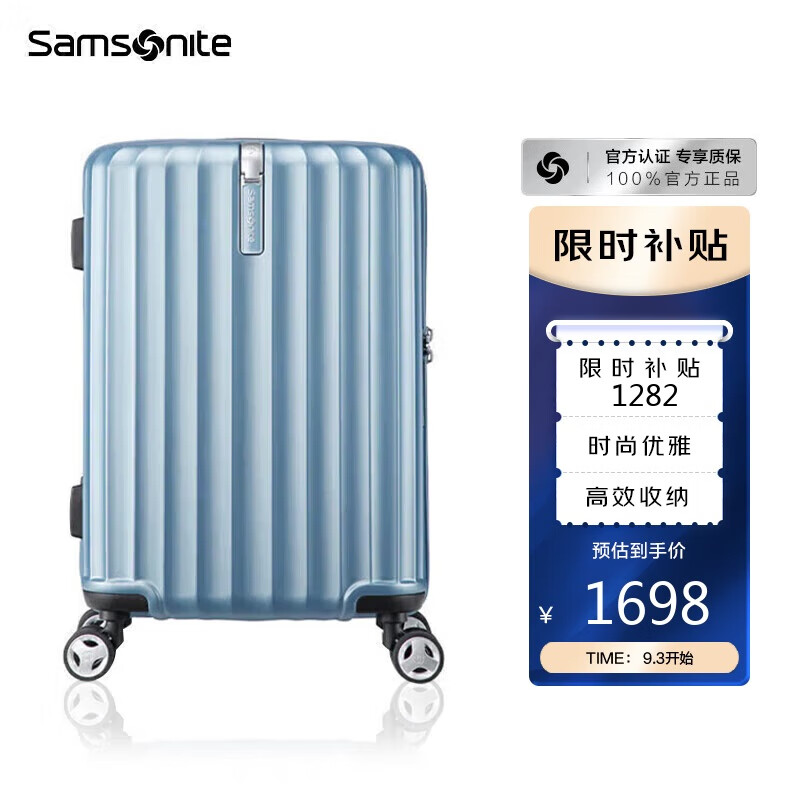新秀丽(Samsonite)行李箱时尚竖条纹拉杆箱旅行箱浅蓝色25英寸托运箱GU9*11002价格:1899.00元!