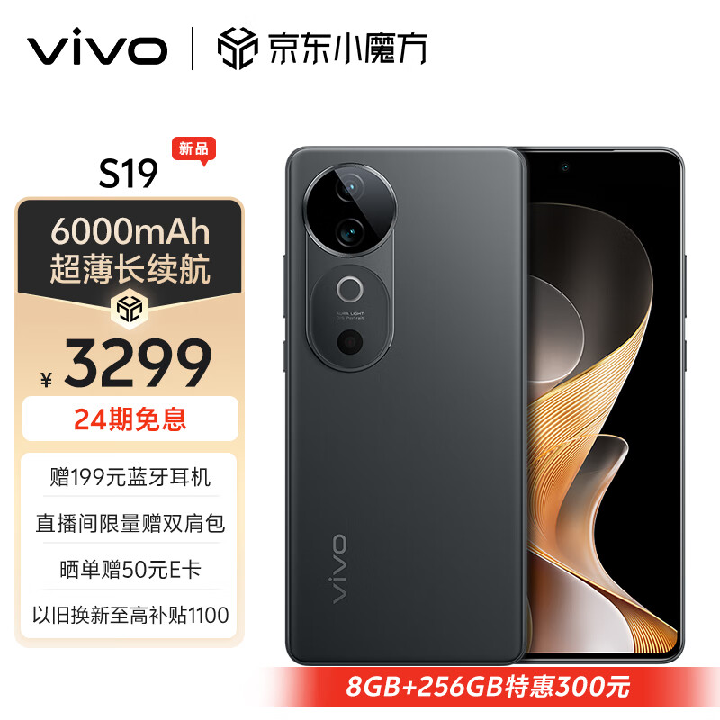 vivo S19 16GB+512GB 松烟墨 6000mAh超薄长续航 影棚级柔光环 百万跑分第三代骁龙7 5G 拍照 手机价格:3299.00元!