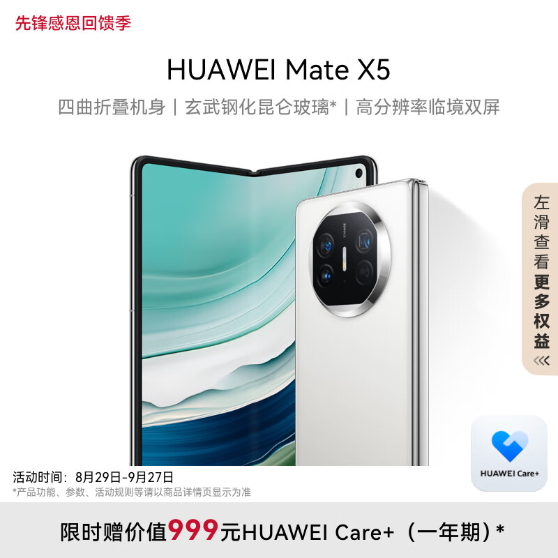 华为(HUAWEI) Mate X5 折叠屏手机 12GB+512GB 羽砂白价格:12499.00元!