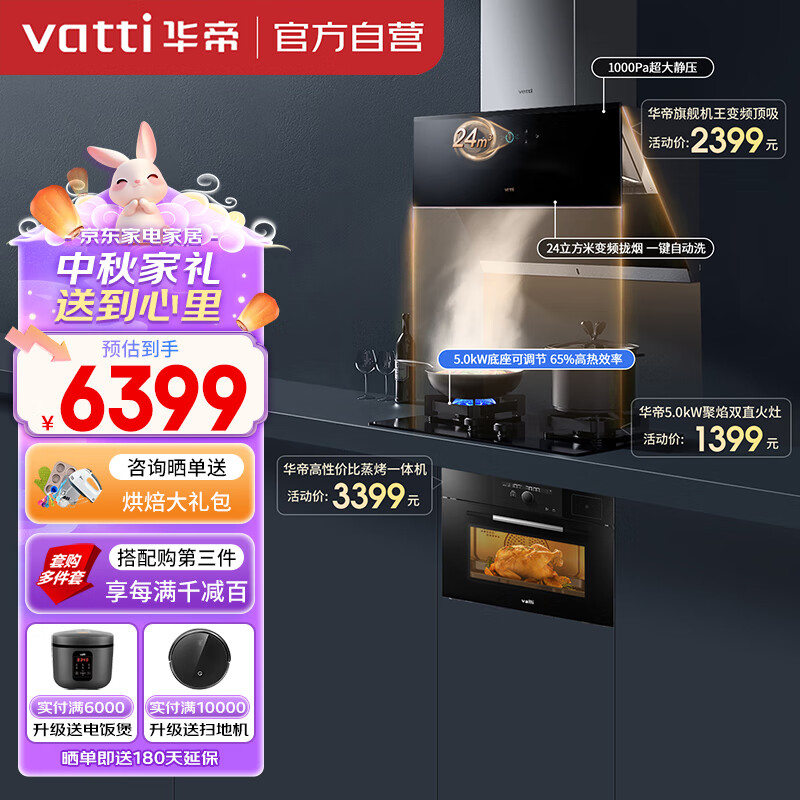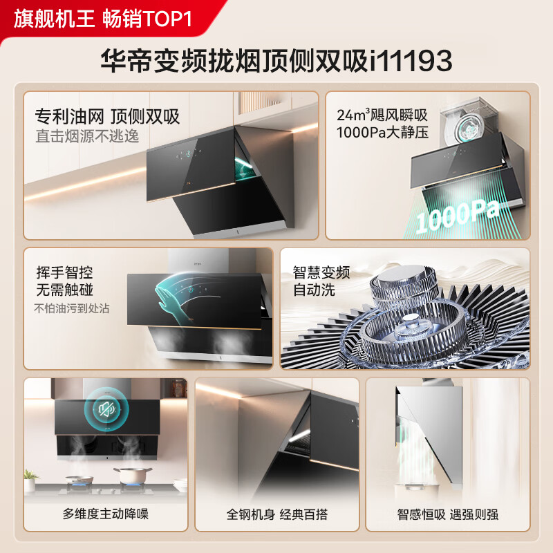 华帝(VATTI)抽油烟机旗舰机王侧吸式变频油烟机燃气灶微蒸烤家用厨房三件套i11193+72B+i23011(天然气)价格:6399.00元!