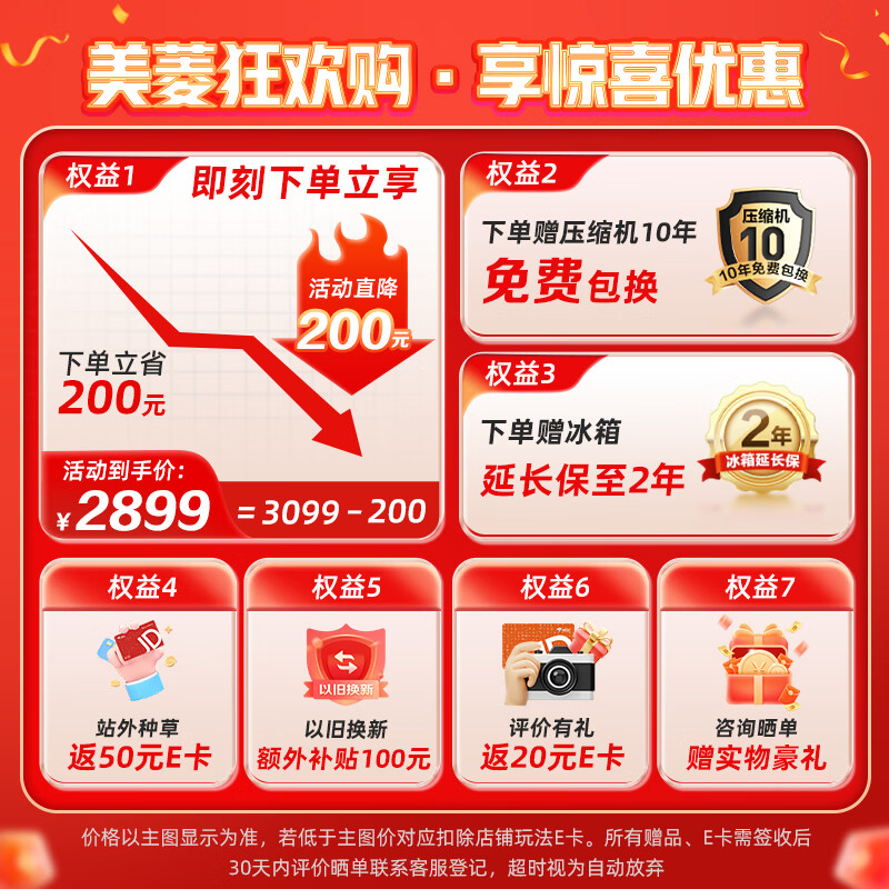 5、收货后20天来评价了,冰箱空间大占地面积小,小户型用着很好,声音比较小,站在冰箱前能听到,离开后就听不见了,抽屉式冷冻室用起来很方便,容量够大。目前没发现什么问题。京东送货又快又负责美菱售后反应很快,需要调整一下门,打了电话后,当天就来给调好了。